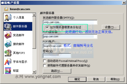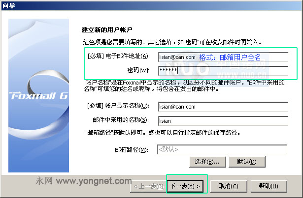 第二步:建立新的用戶帳戶,“電子郵件地址”中填寫郵箱用戶名全名