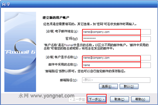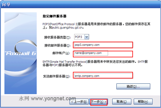 A: 第一步:【郵箱】=>【新建郵箱帳戶】![]() 第二步:接收郵件服務(wù)器:pop3.company.com 郵件帳戶:name@company.com (重要提示:@后面一定要把郵件帳戶地址填完整) 發(fā)送郵件服務(wù)器:smtp.company.com ![]() 第三步:測(cè)試帳戶設(shè)置 ![]() 如果Foxmail設(shè)置未成功,請(qǐng)按以下方式檢查: 打開(kāi)郵箱帳戶設(shè)置,檢查:1. 在SMTP服務(wù)器需要身份驗(yàn)證前需要打鉤。2. POP3帳戶地址一定要填寫(xiě)完整,包括@后面部分。 ![]() |
