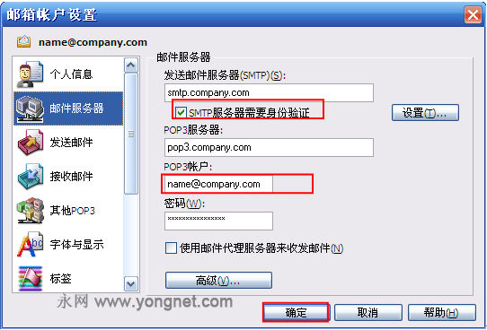 | A: POP 即為 Post Office Protocol 的簡(jiǎn)稱,是一種電子郵局傳輸協(xié)議,而 POP3 是它的第三個(gè)版本,是規(guī)定了怎樣將個(gè)人計(jì)算機(jī)連接到 Internet 的郵件服務(wù)器和下載電子郵件的電子協(xié)議。它是 Internet 電子郵件的第一個(gè)離線協(xié)議標(biāo)準(zhǔn)。簡(jiǎn)單點(diǎn)說(shuō),POP3 就是一個(gè)簡(jiǎn)單而實(shí)用的郵件信息傳輸協(xié)議。 SMTP 的全稱是“Simple Mail Transfer Protocol”,即簡(jiǎn)單郵件傳輸協(xié)議。它是一組用于從源地址到目的地址傳輸郵件的規(guī)范,通過(guò)它來(lái)控制郵件的中轉(zhuǎn)方式。SMTP 協(xié)議屬于 TCP/IP 協(xié)議簇,它幫助每臺(tái)計(jì)算機(jī)在發(fā)送或中轉(zhuǎn)信件時(shí)找到下一個(gè)目的地。SMTP 服務(wù)器就是遵循 SMTP 協(xié)議的發(fā)送郵件服務(wù)器。 郵局企業(yè)郵箱的收發(fā)服務(wù)器: pop3 地址:pop3.company.com smtp 地址:smtp.company.com 帳號(hào):name@comany.com (注意是郵箱全名) |