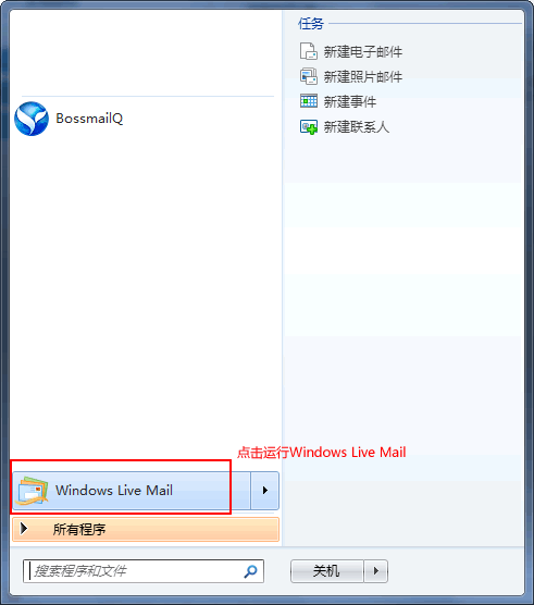 1.点击打开“Windows Live Mail”软件 如下图1-1所示: