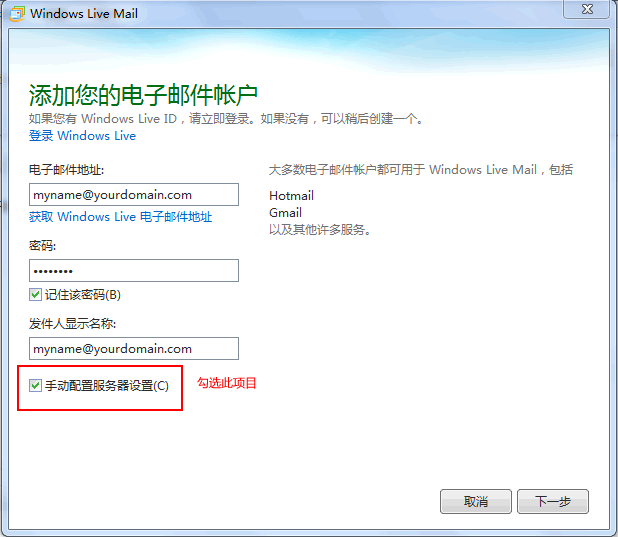 请注意:以下示例中的“yourdomain.com”请替换为您的邮局域名。